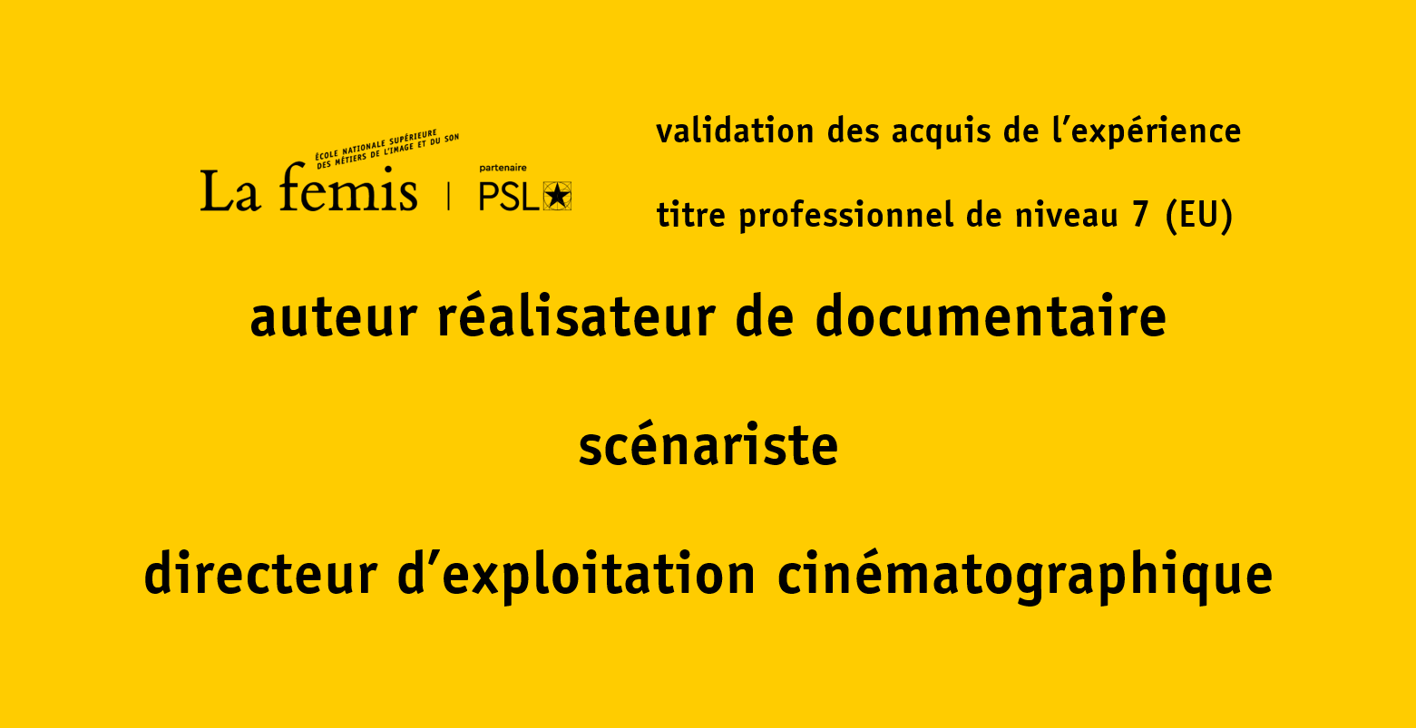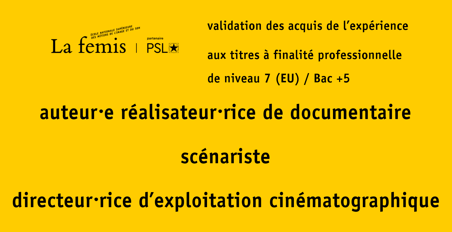 Il est possible d’acquérir un titre professionnel délivré par la formation continue de La Fémis sur la base de ses acquis et de son expérience professionnelle pour :