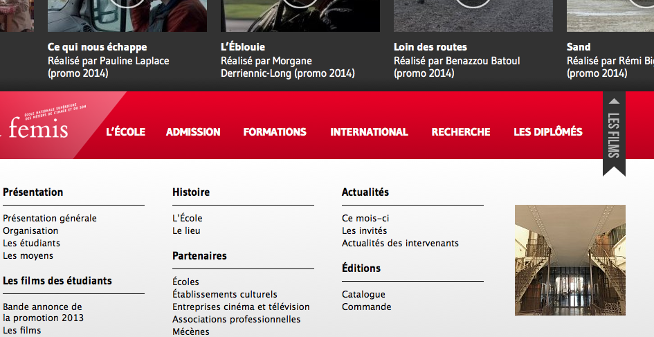 Nouveau ! Nous sommes heureux de vous présenter le nouveau site internet de La Fémis. Ce site comporte de nombreuses nouveautés : films en haute définition, accès à l’annuaire et aux actualités des diplômés, actualité de l’École, simulateur de taxe d’apprentissage, foire aux questions, calendrier des (…)
