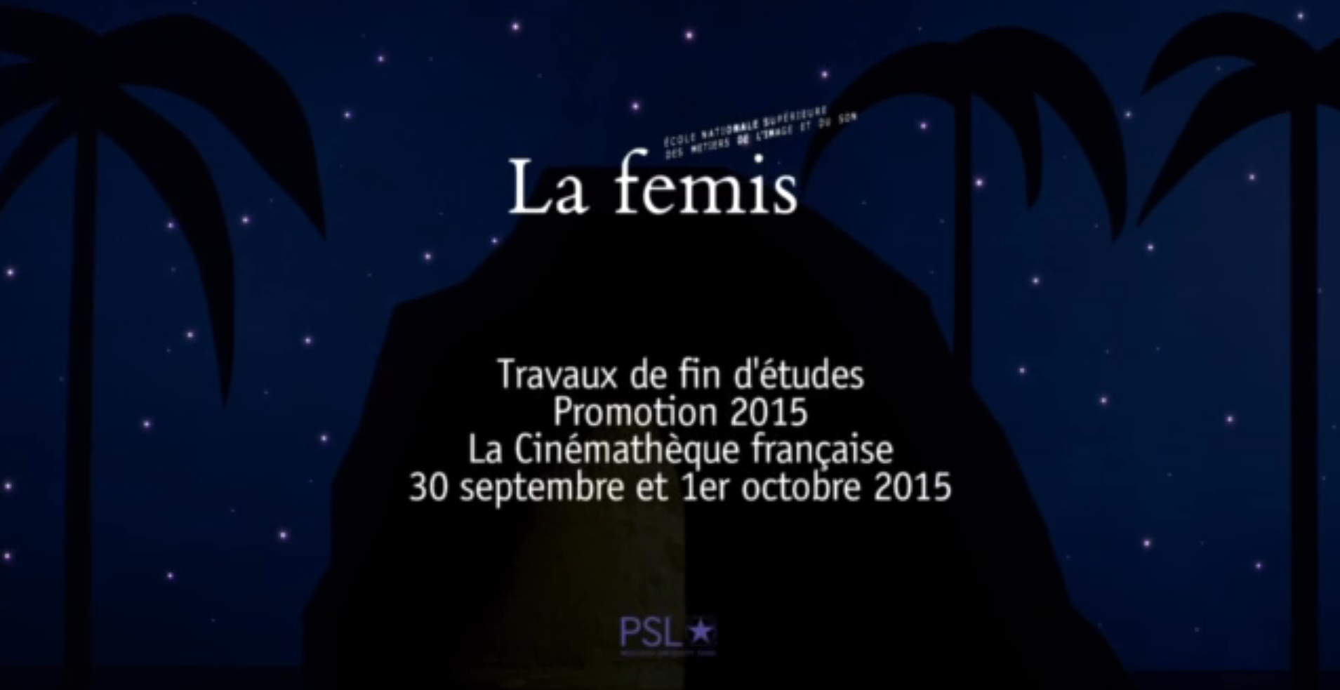 Présentation des travaux de fin d’études de la promotion Luis Bunuel 2015 Après la présentation à la Cinémathèque française le 30 septembre et le 1er octobre, La Fémis vous invite à venir découvrir les travaux de fin d’études de la promotion 2015 à l’École. Vendredi 2 octobre à 20h : Lectures d’extraits de scénario de longs métrages des diplômés scénaristes / Salle (…)