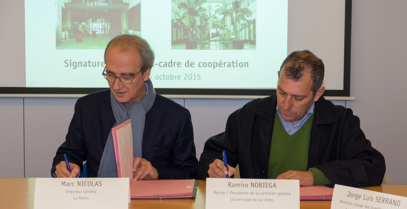 SIGNATURE ACCORD-CADRE DE COOPÉRATION Marc NICOLAS, Directeur général de La Fémis et Ramiro NOREIGA, Président de UniArtes ont signé un accord-cadre de coopération à Paris le 14 octobre 2015. Cette signature est l’aboutissement de deux années de relations et d’échanges entre ces deux établissements. L’accord-cadre porte sur un (…)
