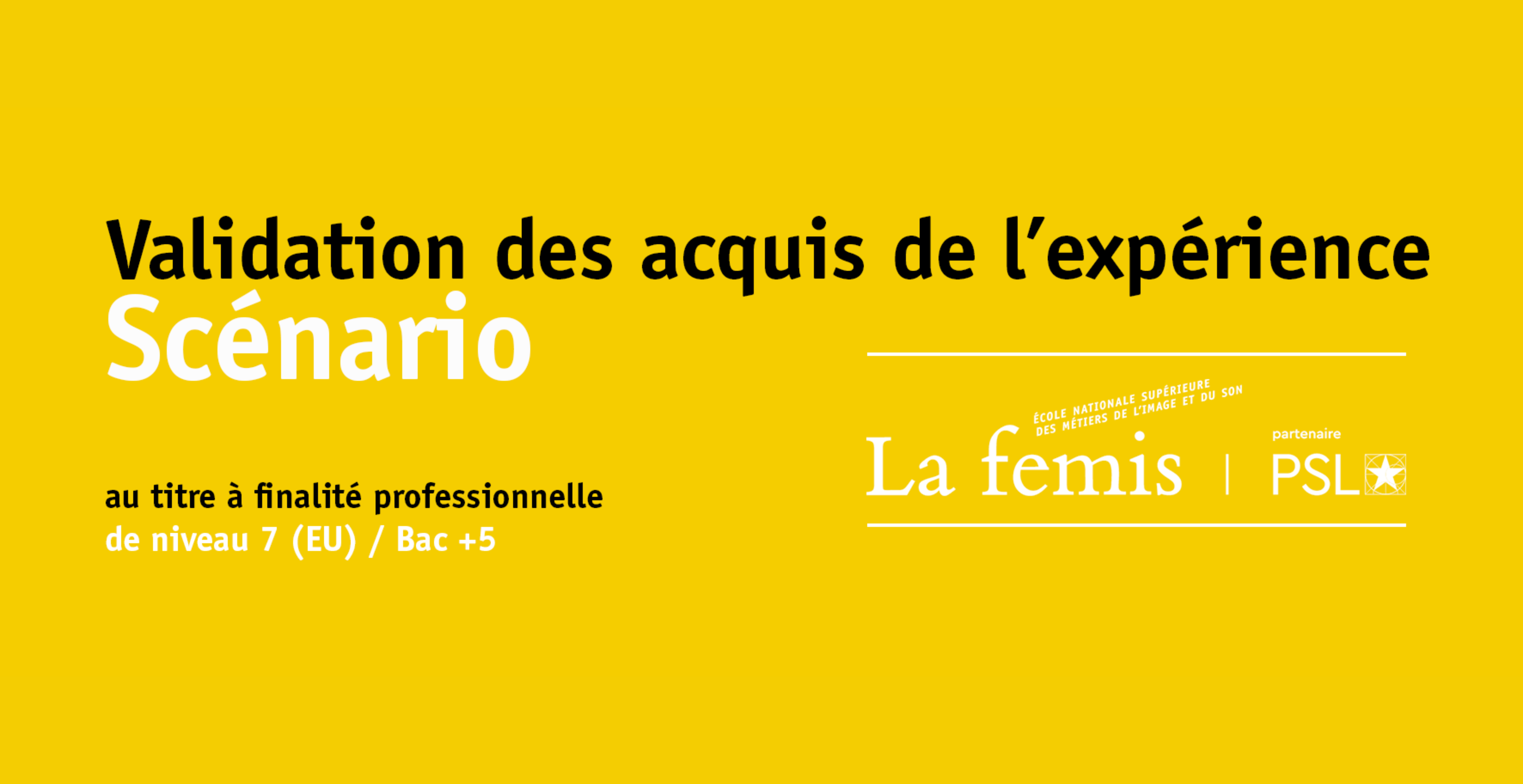Validation des Acquis de l’Expérience au titre de Scénariste Il est possible d’acquérir un titre professionnel de Scénariste délivré par la formation continue de La Fémis sur la base de ses acquis et de son expérience professionnelle.