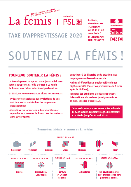 Retrouvez plus d’informations sur le site de La Fémis : http://www.femis.fr/versez-votre-taxe-d-apprentissage